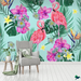 Papel pintado turquesa con flamenco rosa — un rincón tropical en tu casa