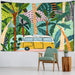 Llena tu hogar de frescura y buen rollo con este tapiz mural tropical de diseño exuberante. Un estampado de hojas multicolor que evoca una jungla vibrante y una furgoneta amarilla y blanca que sugiere verano, carretera y libertad. Ideal para transformar un salón, dormitorio, despacho o cualquier pared que necesite un toque de aventura. ¡Casi se oye el sonido de las olas!